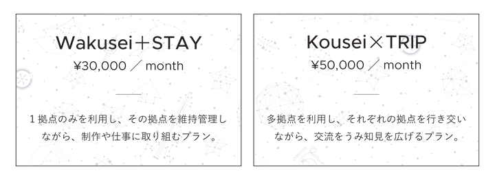 惑星+STAYは、東京都目黒区都立大の4店舗、東京都吉祥寺、静岡県の静岡市鷹匠と浜松市水窪の各1店舗それぞれに10名ずつ、恒星×TRIPは20名を予定しています。